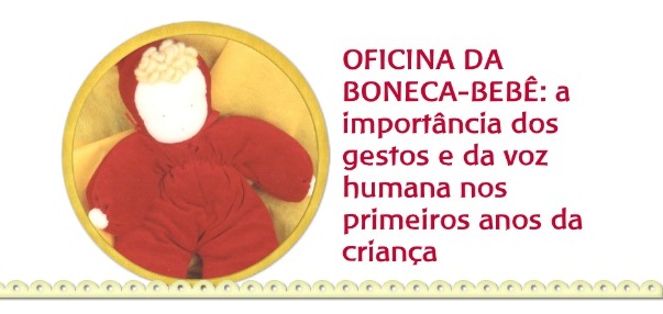 A observação da criança a partir das forças plásticas que atuam desde a gestação. Os gestos dos adultos e sua relação com o andar, o falar e o pensar da criança. A voz humana como promotora da saúde da criança. Oficina de construção do boneco-bebê, inspirado na Pedagogia Waldorf.